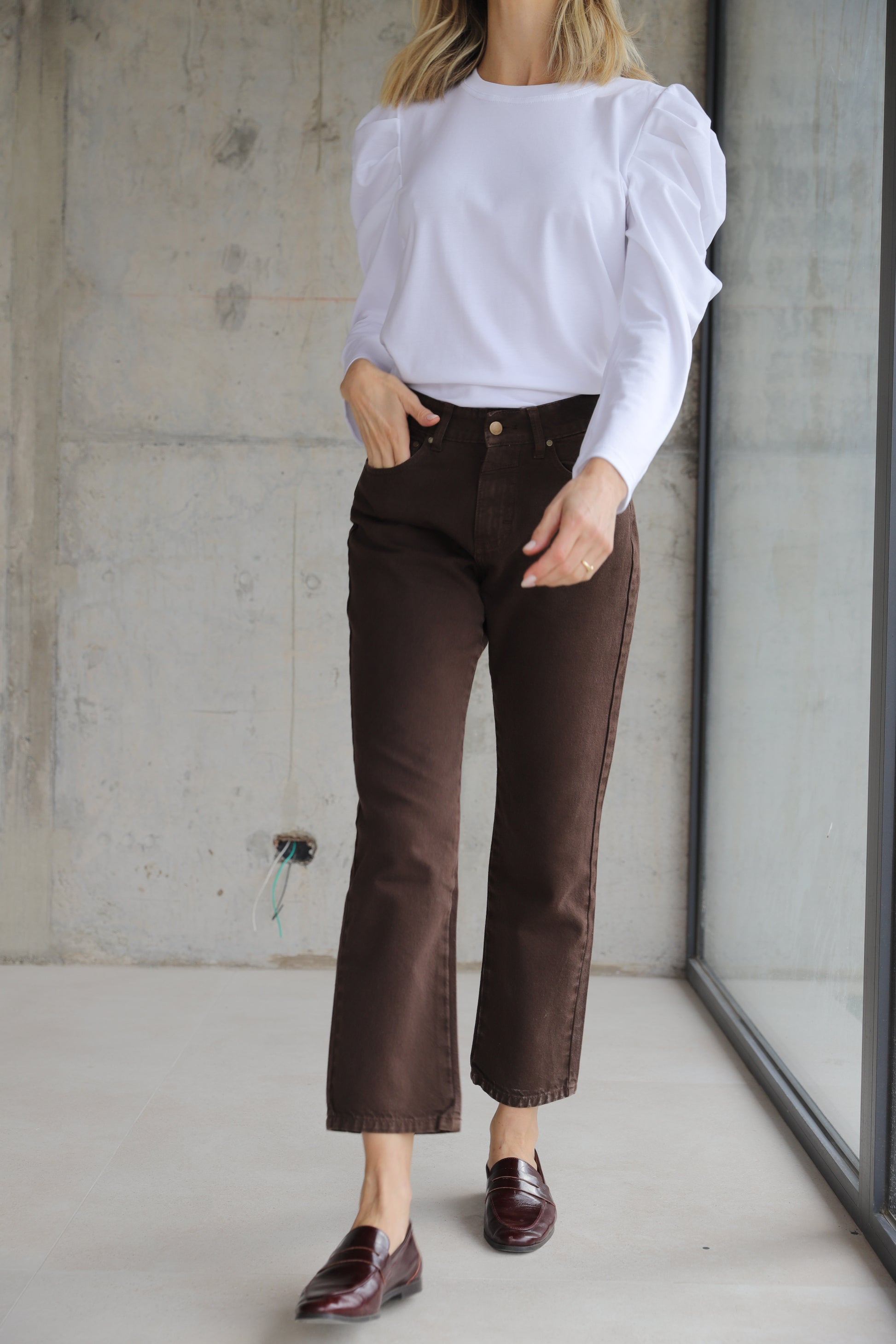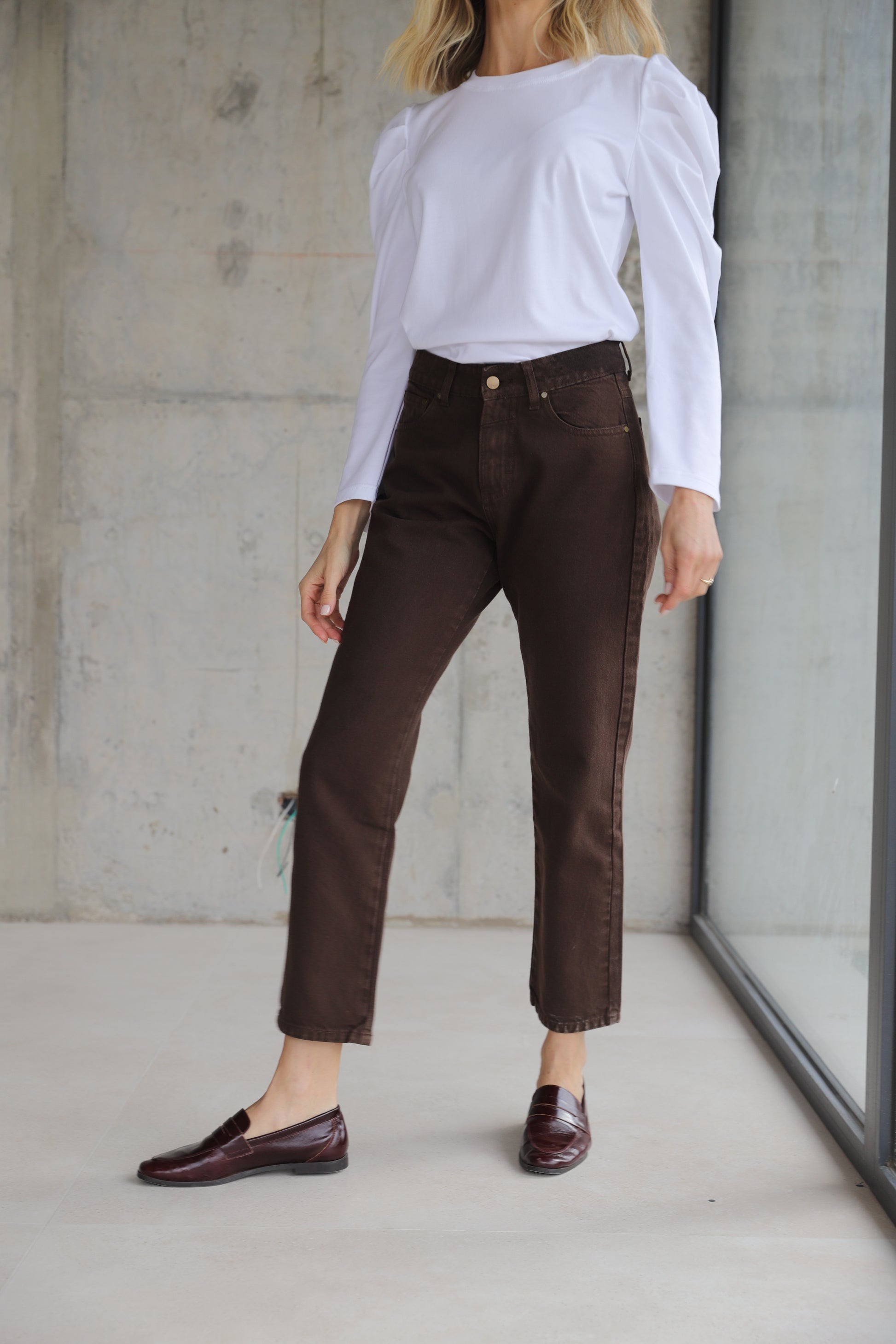 Diseñado para un calce de pierna recto y tiro Medio. Si bien queda mas ajustado en el muslo, cae desde la rodilla haciendo una buena imagen. Cierre frontal con cremallera y botón metálico