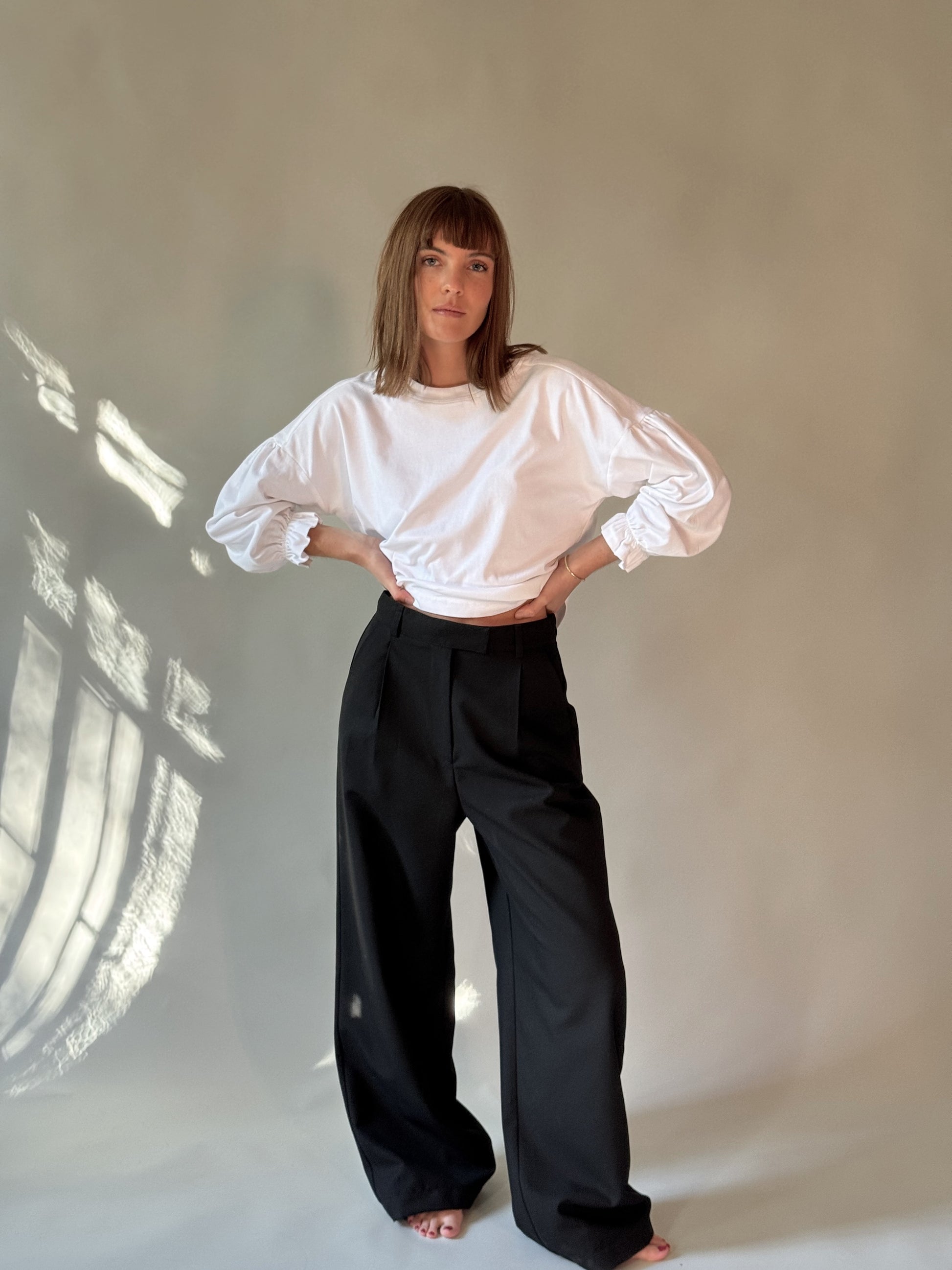 Prenda de vestir pensada para el día a día profesional. Diseñado con tiro alto y piernas amplias, combina estructura y fluidez para lograr un look elegante sin rigidez. Su corte favorecedor estiliza la silueta y lo convierte en un infaltable para looks de oficina o eventos formales.
