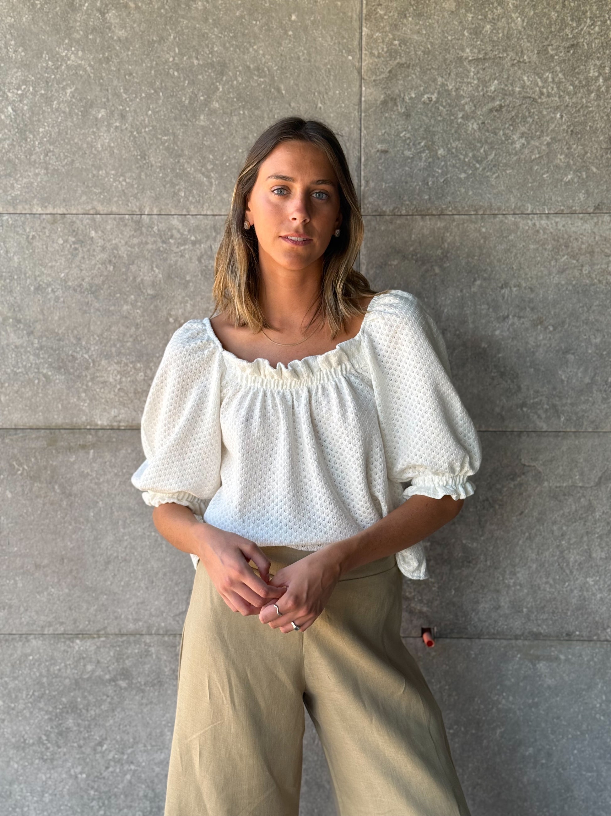 Polera de algodón, con manga globo y terminación en elástico. Es una nueva versión de nuestra amada polera Bergenia!