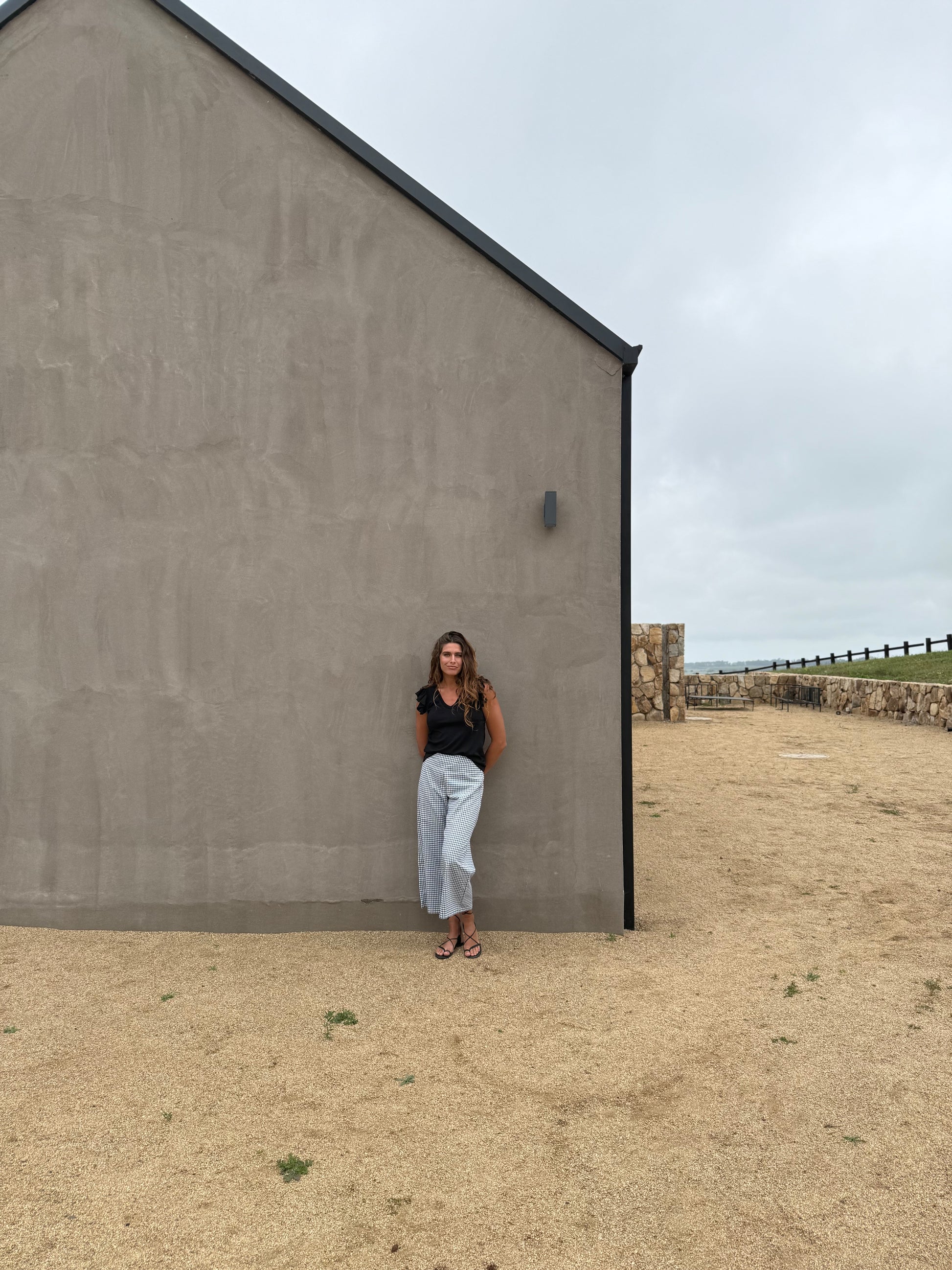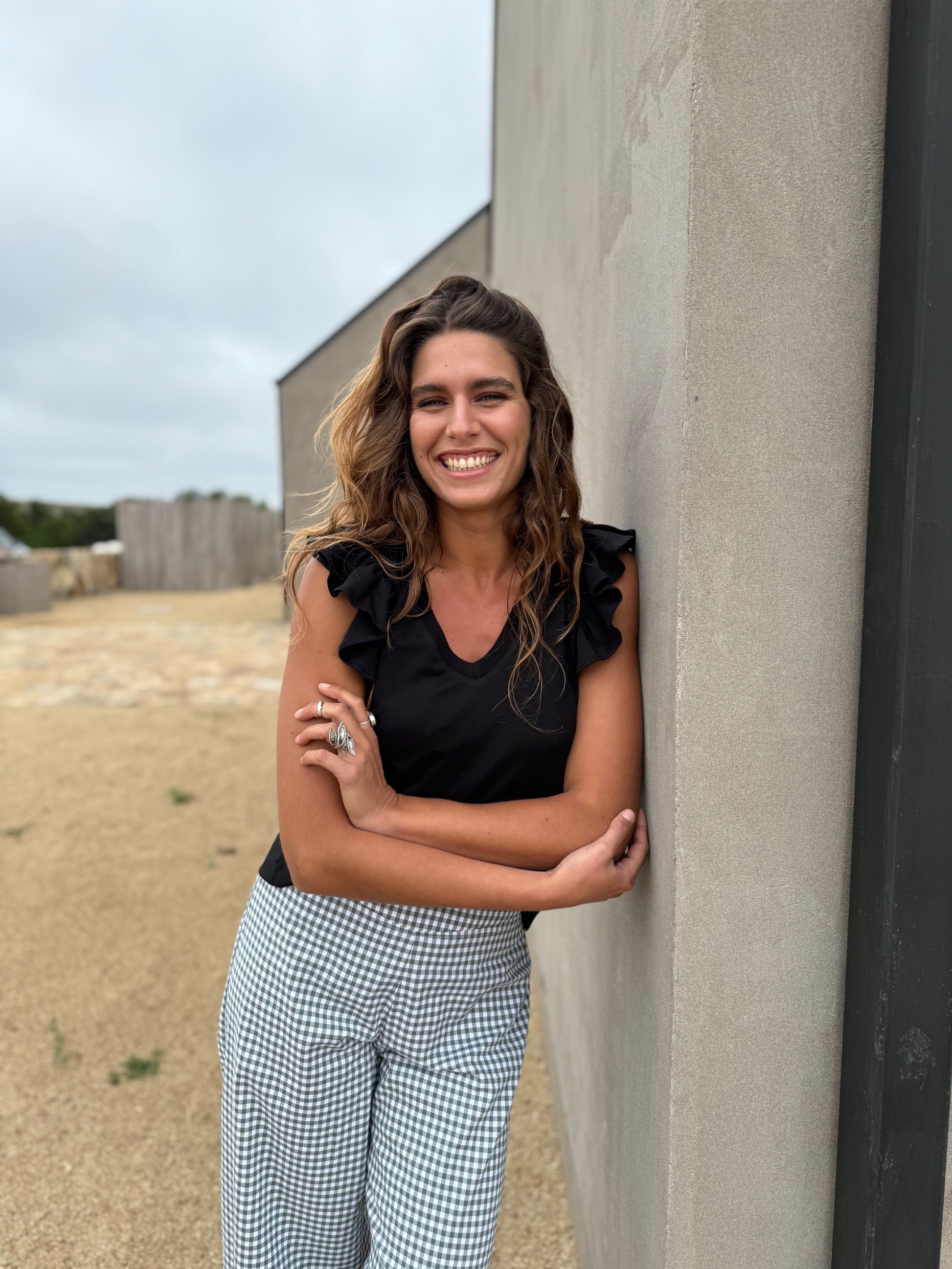 olera de algodón pima gamuzado, con escote en V y vuelos en todo el contorno del hombro.
