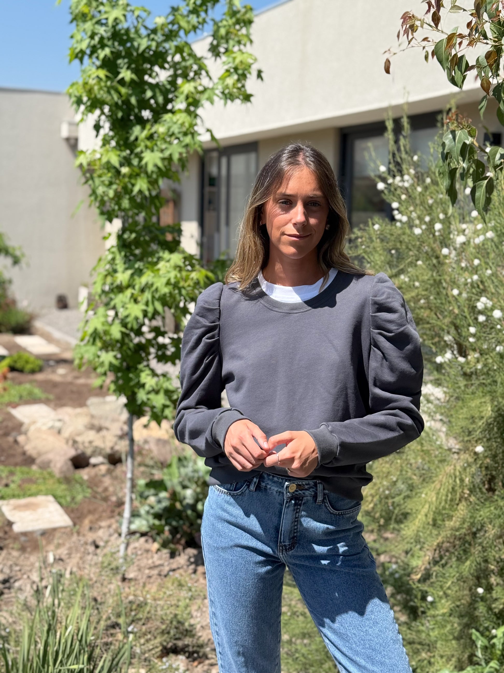 Poleron de 100% algodón con manga globo. Terminaciones en puño.