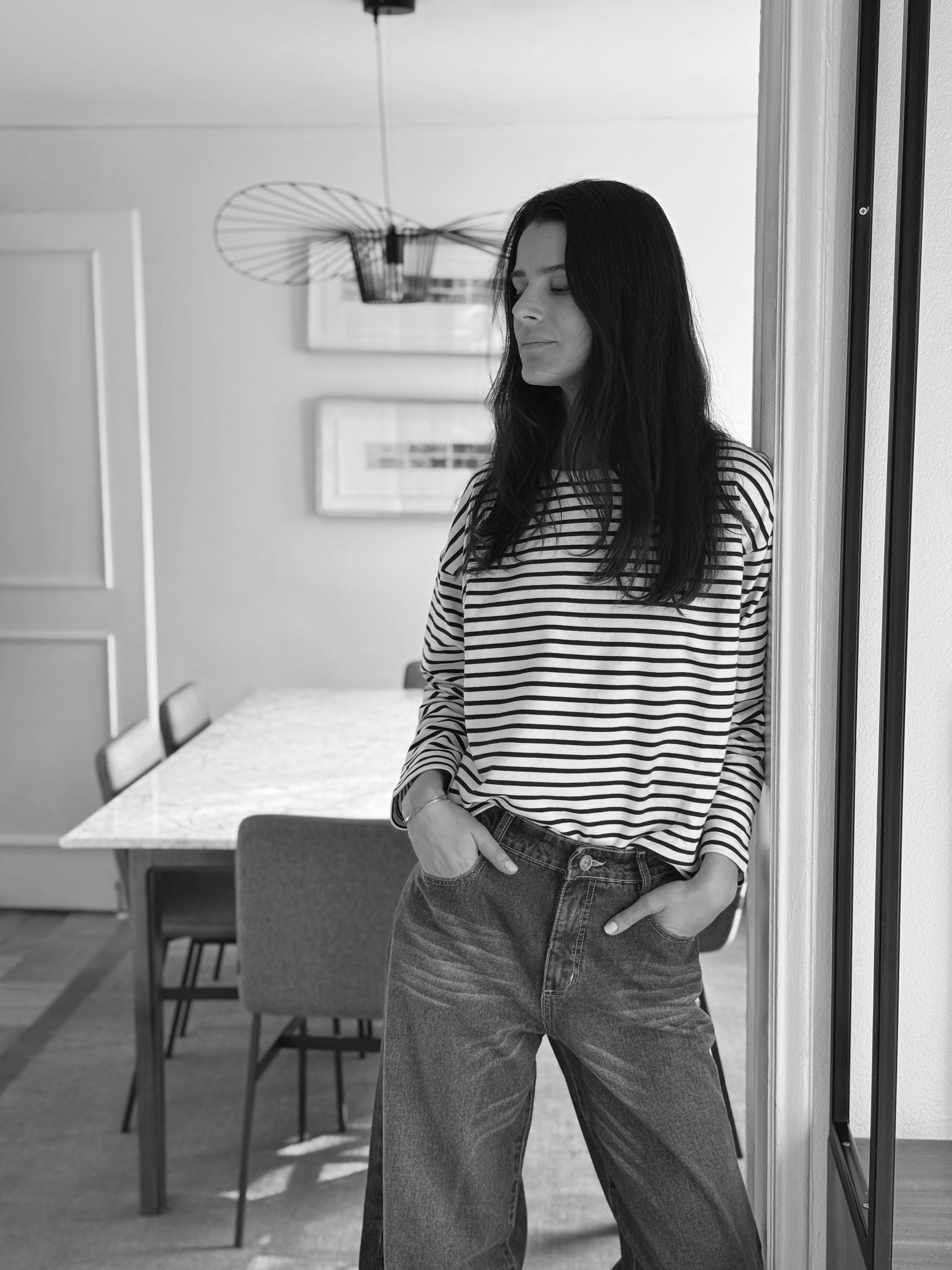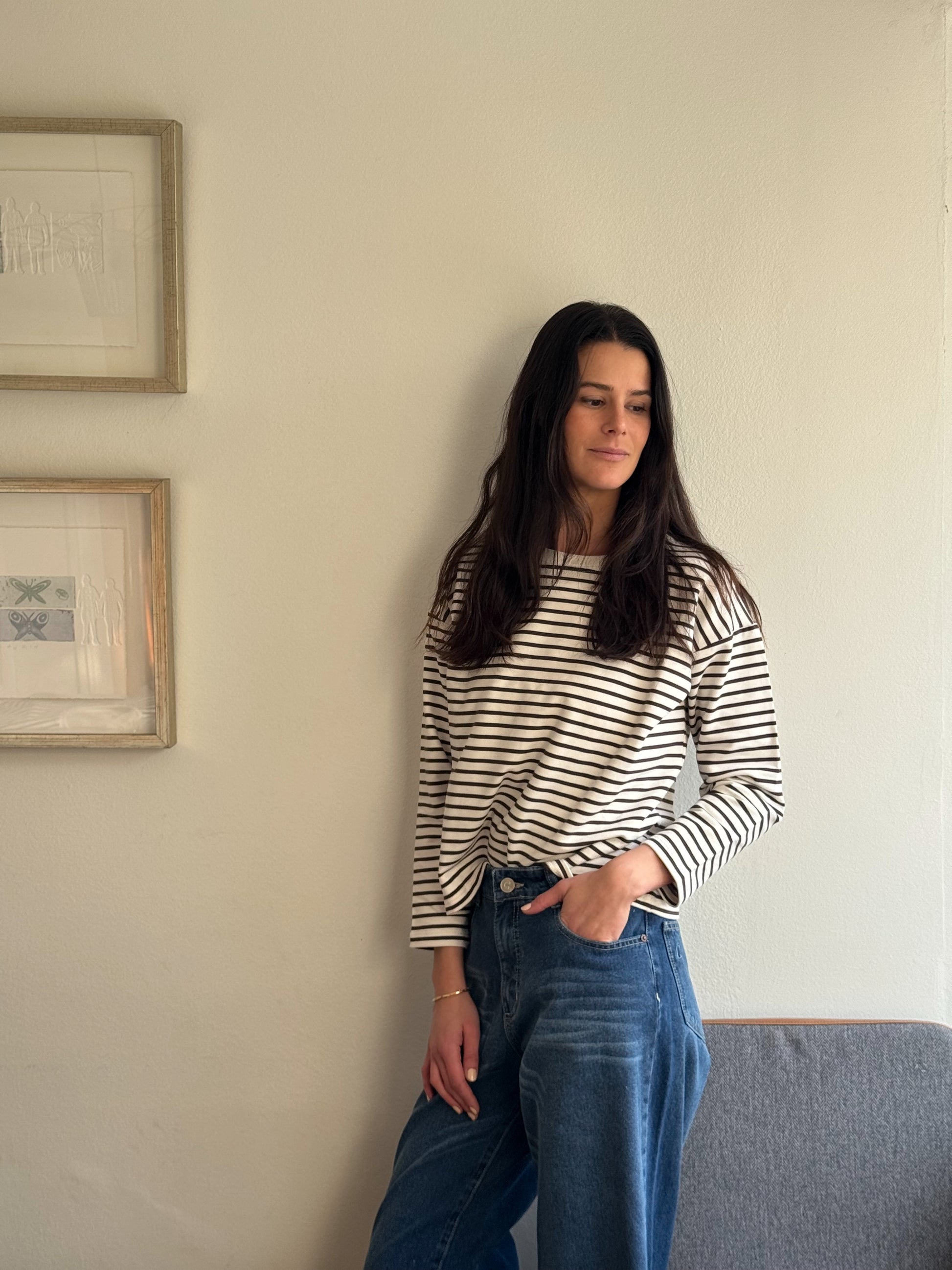 El diseño de rayas horizontales aporta una identidad visual sutil, haciendo de esta prenda un básico con carácter. Perfecto para combinar con jeans clásicos, pantalones sastreros, polleras de punto o sobre una blusa, funciona igual de bien para un look casual como para uno más cuidado.
