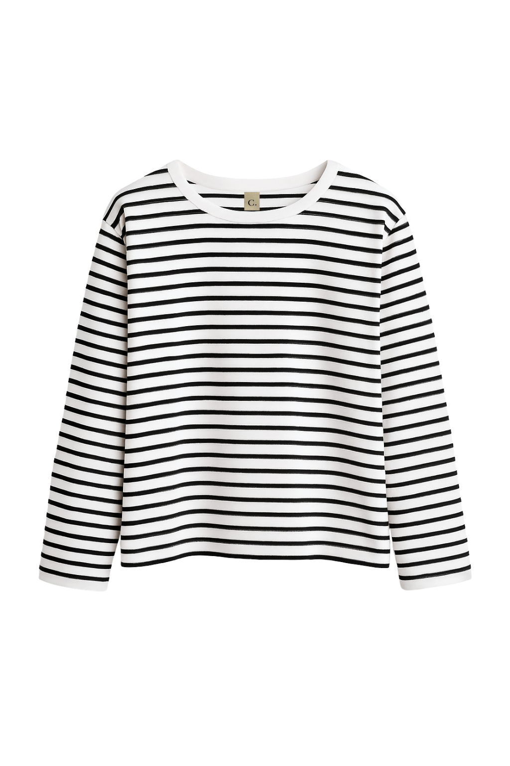 Ideal para: quienes buscan un polerón de algodón con diseño de rayas, prendas de media estación fáciles de combinar, o para regalar un básico atemporal con personalidad.