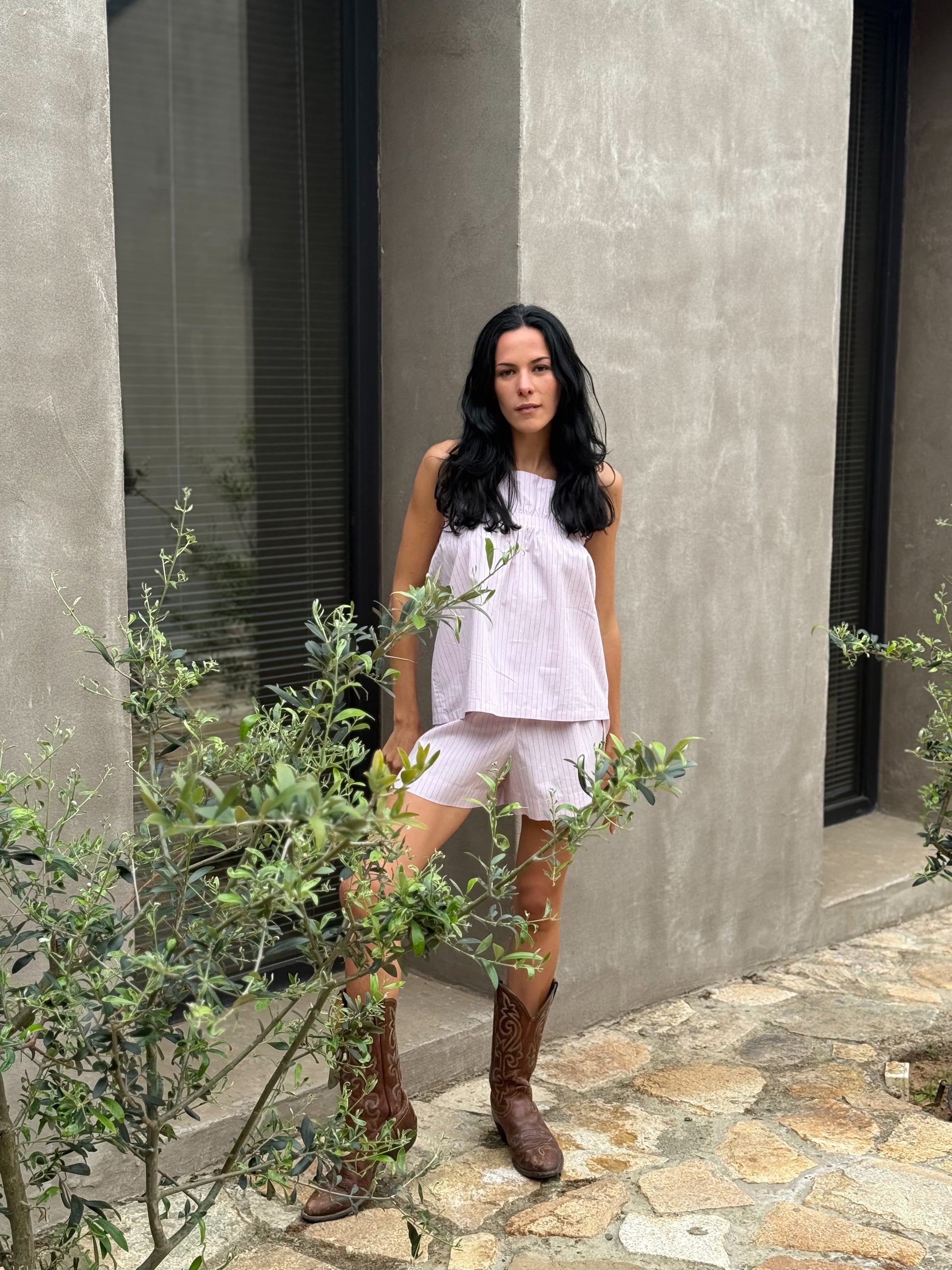 Un short camisero con elástico, que busca la comodidad ante todo en estos días de más calor. Llévalo con su blusa tineo en conjunto. La versatilidad también nos permite combinarla con todas las otras poleras de la colección!