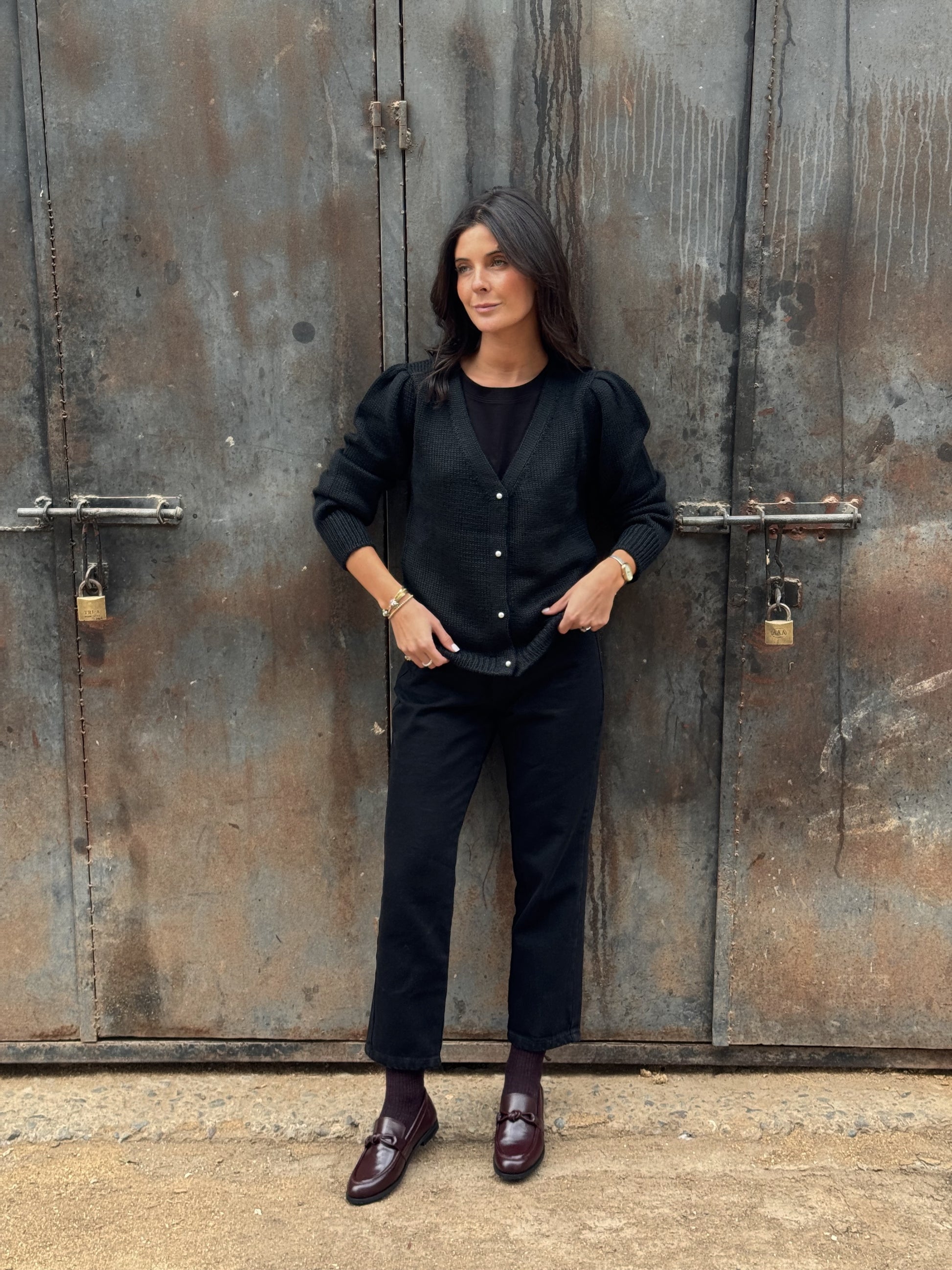 Confeccionado en una mezcla de alpaca, lana y acrílico, cuidadosamente seleccionada para lograr una textura cálida, liviana y suave al tacto. Tejido en Perú y diseñado por C. del Pilar, su escote en V, horma holgada y mangas abullonadas con puño ajustado lo convierten en una prenda clave para vestir en capas con un aire relajado y femenino.